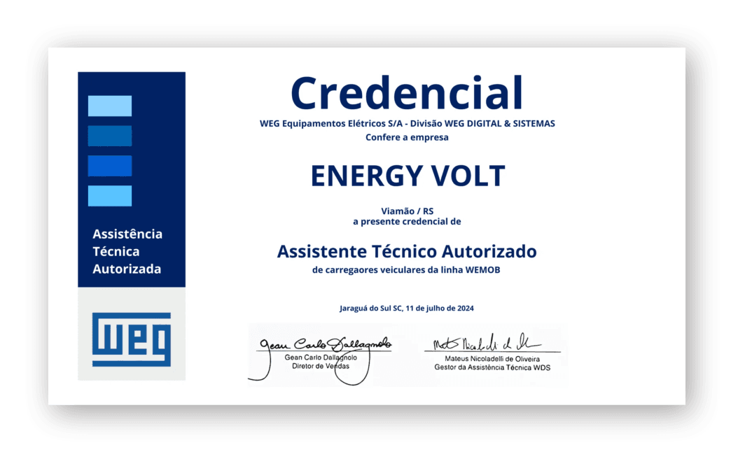 Somos parceiros credenciados da WEG, o que garante que a Energy Volt trabalha com os melhores equipamentos do mercado de energia solar. Nossos produtos são 100% nacionais, com a qualidade e confiabilidade WEG.